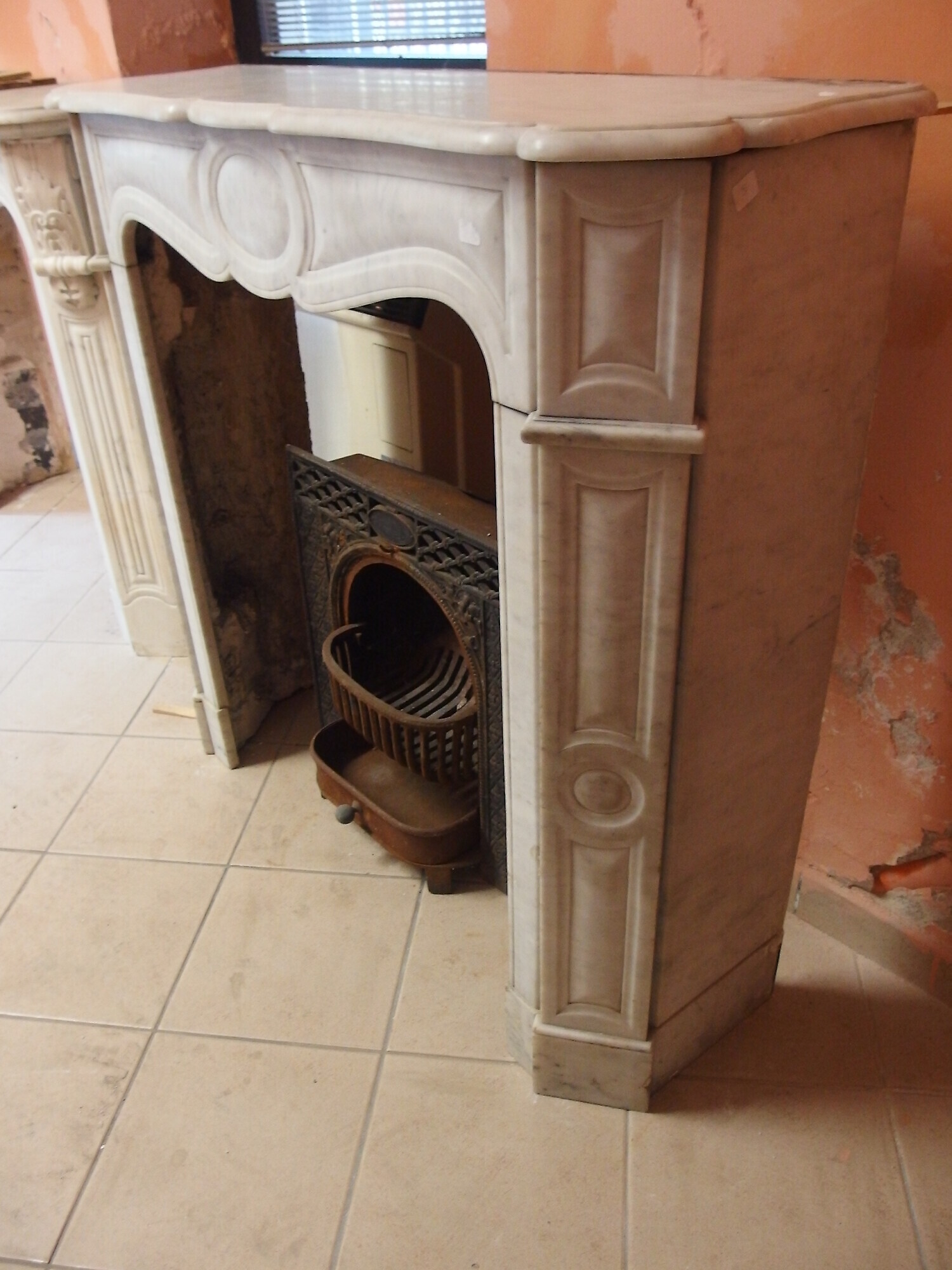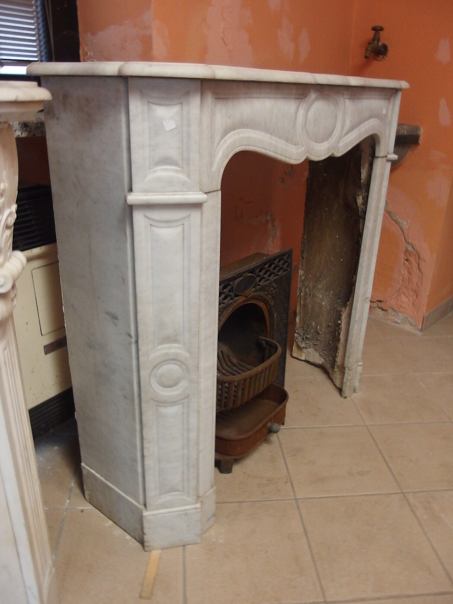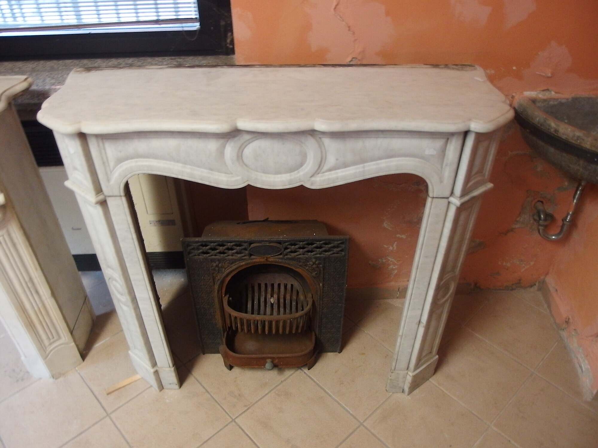 Bellissimo camino in marmo bianco di Carrara stile pompadour (modello semplice) epoca seconda metà dell’800 di provenienza francese.