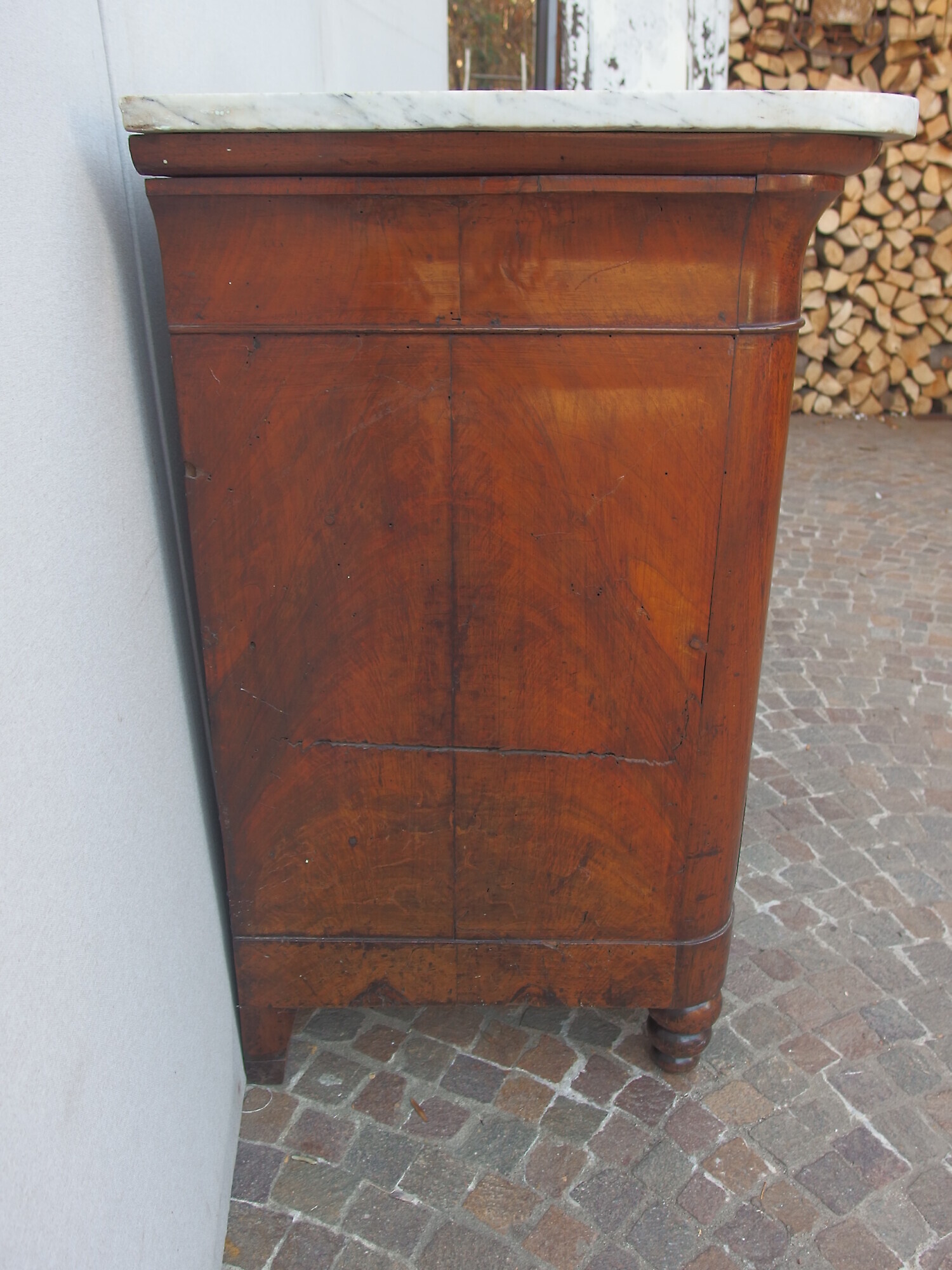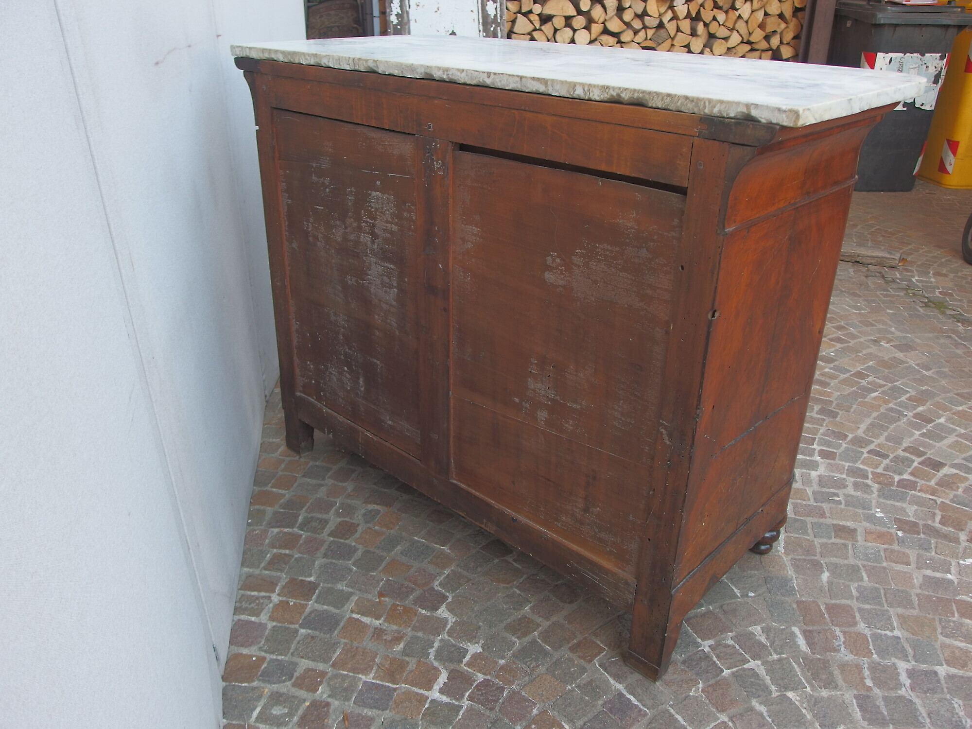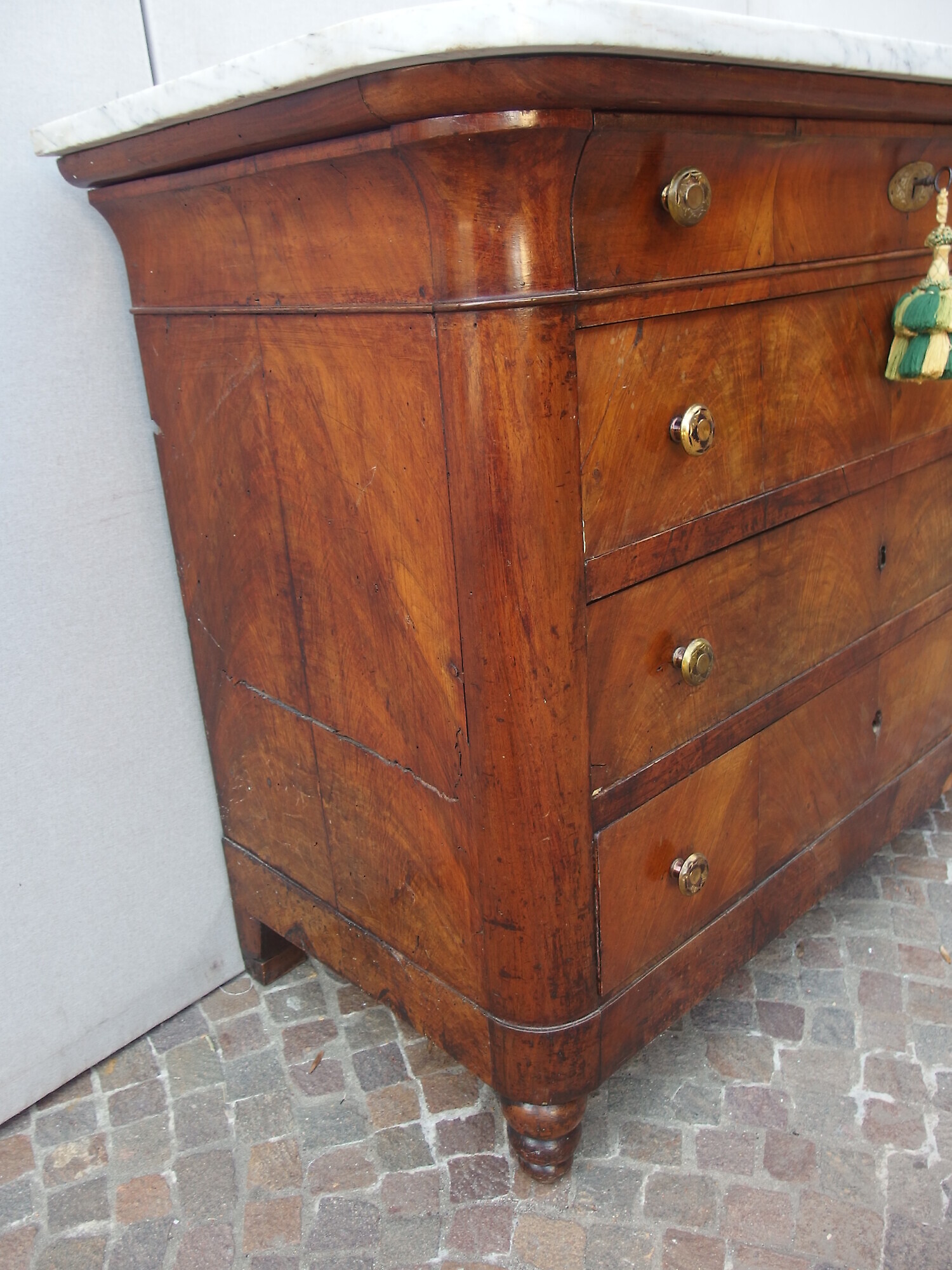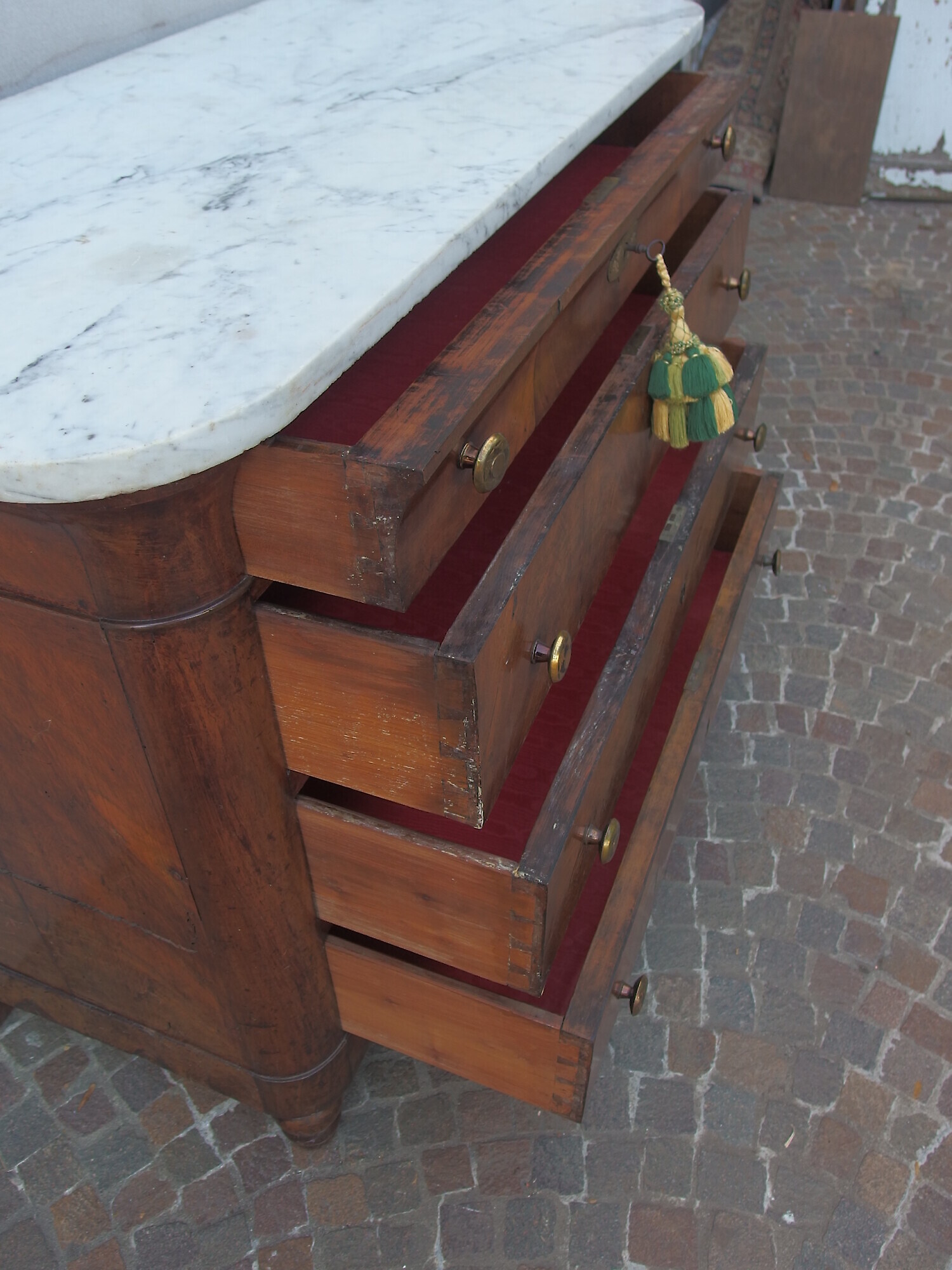 Il cassettone è completamente originale (vedi foto) il piano del cassettone è provvisto di lastra in marmo bianco di Carrara senza rotture. Completo di pomelli e serrature
