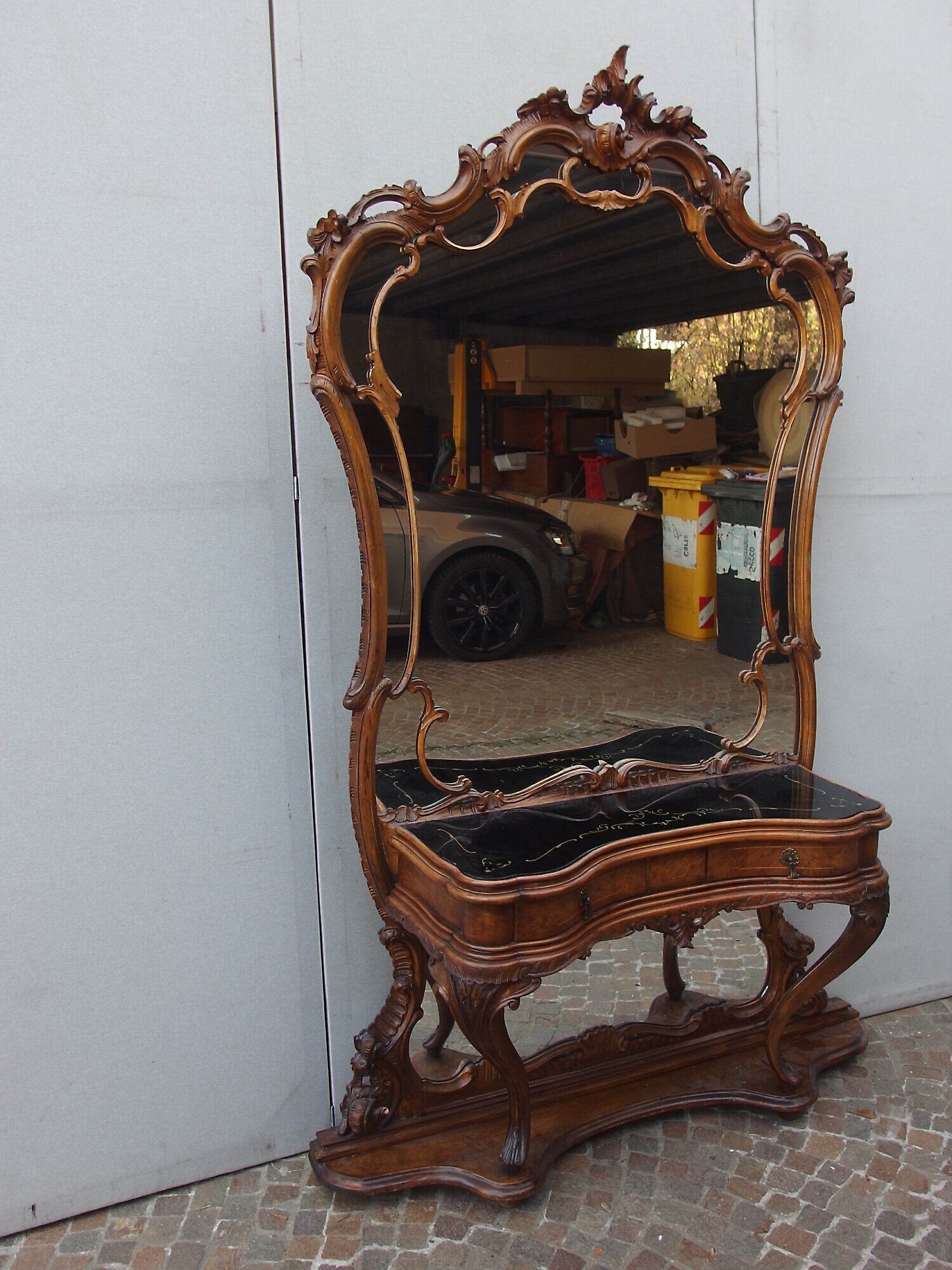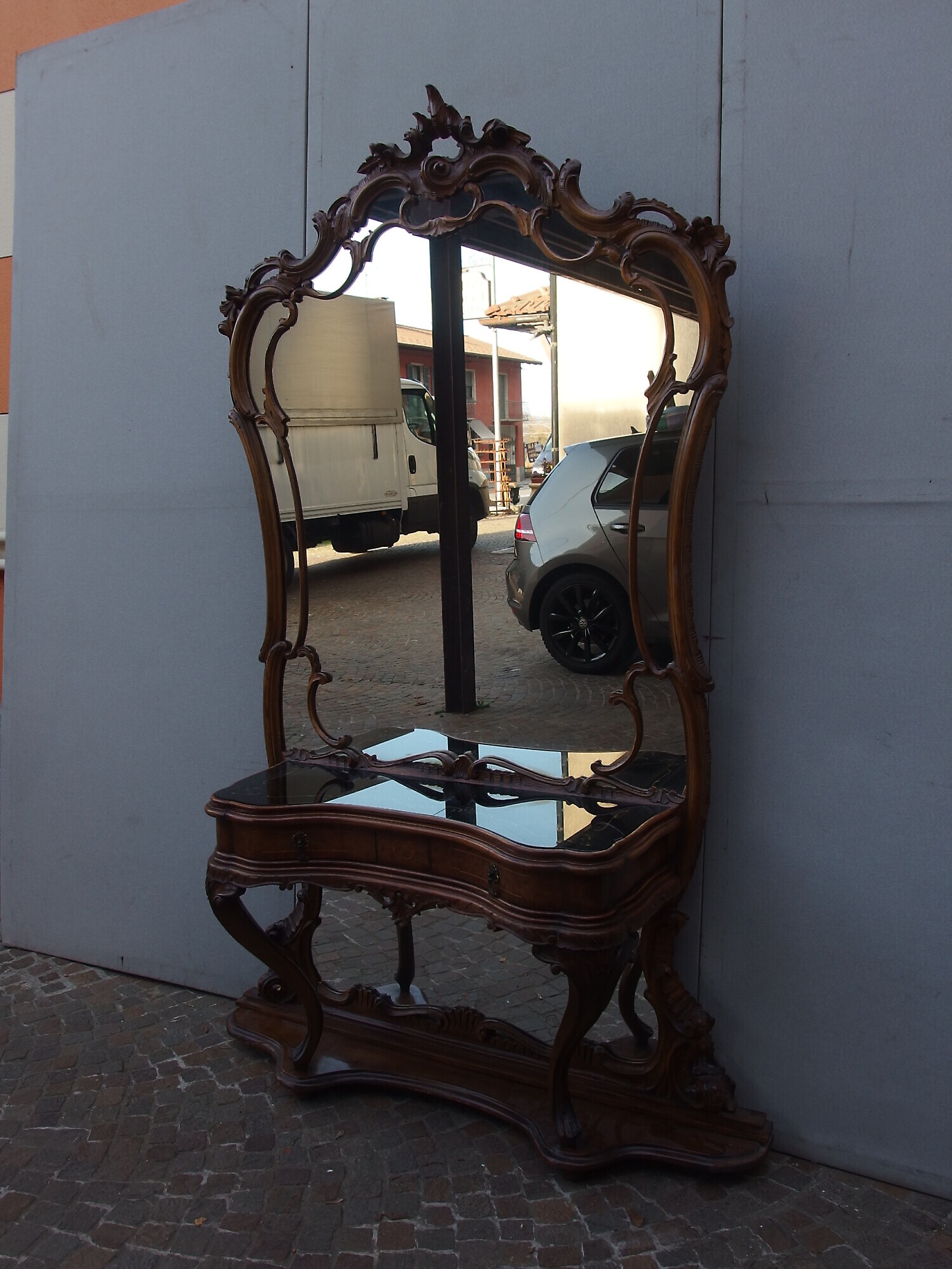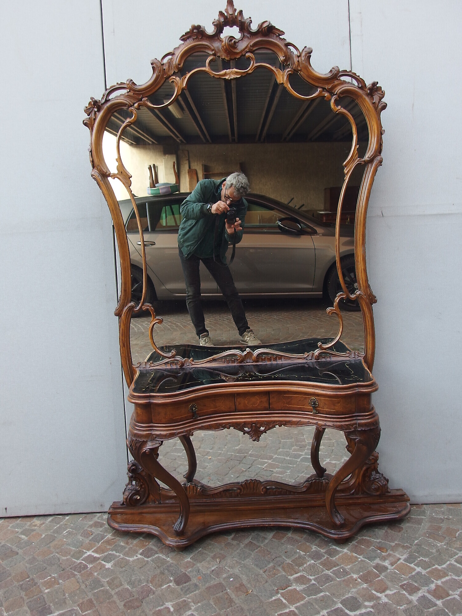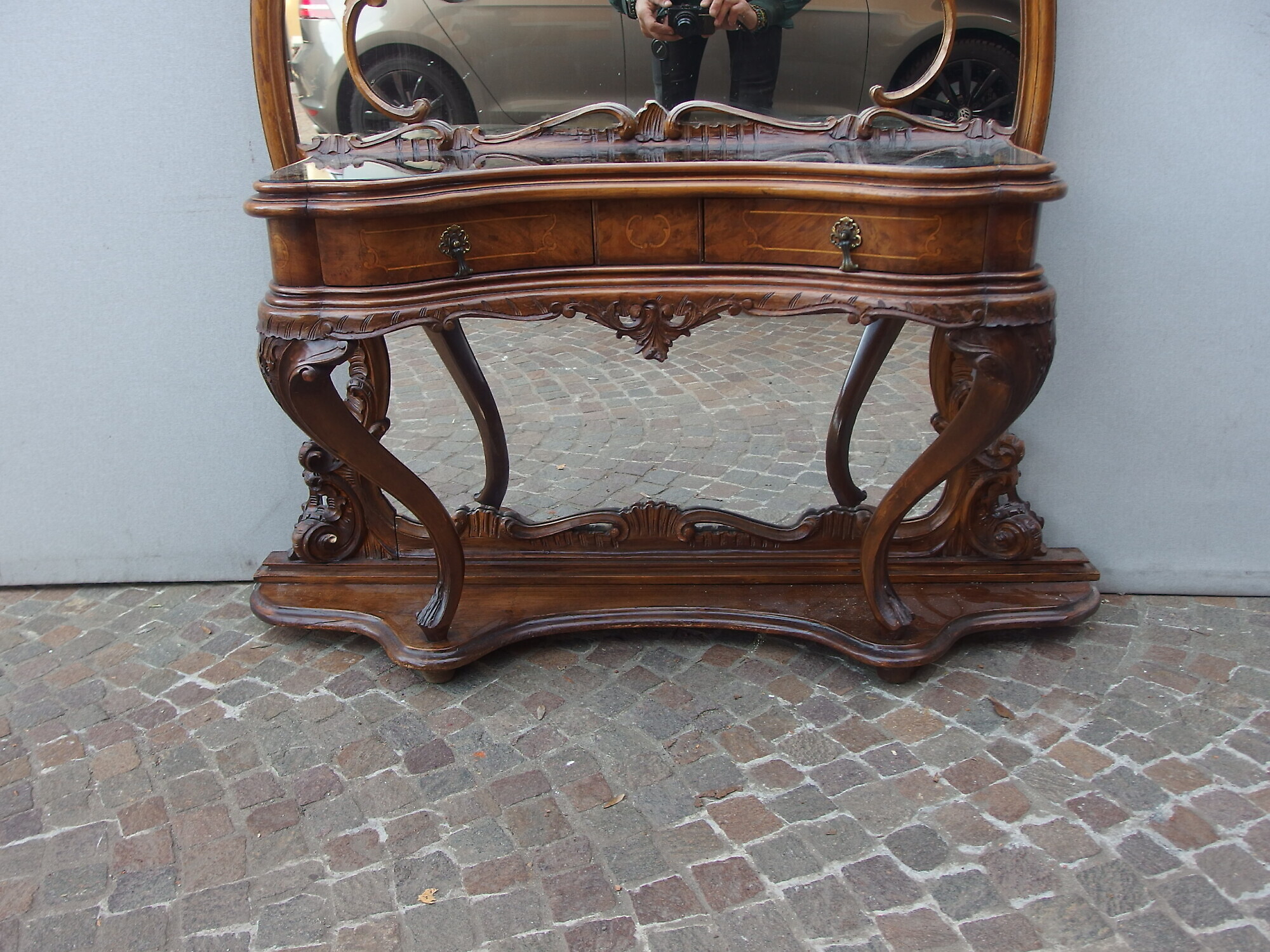 Bellissima consolle in legno scolpito con specchiera epoca 900 di provenienza Italia