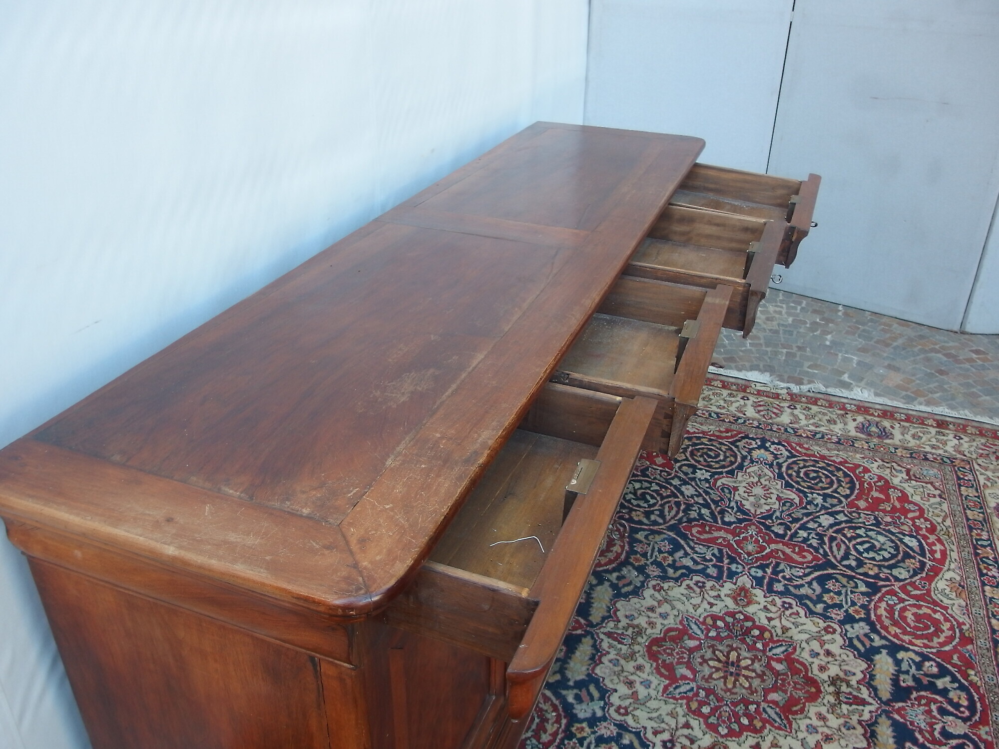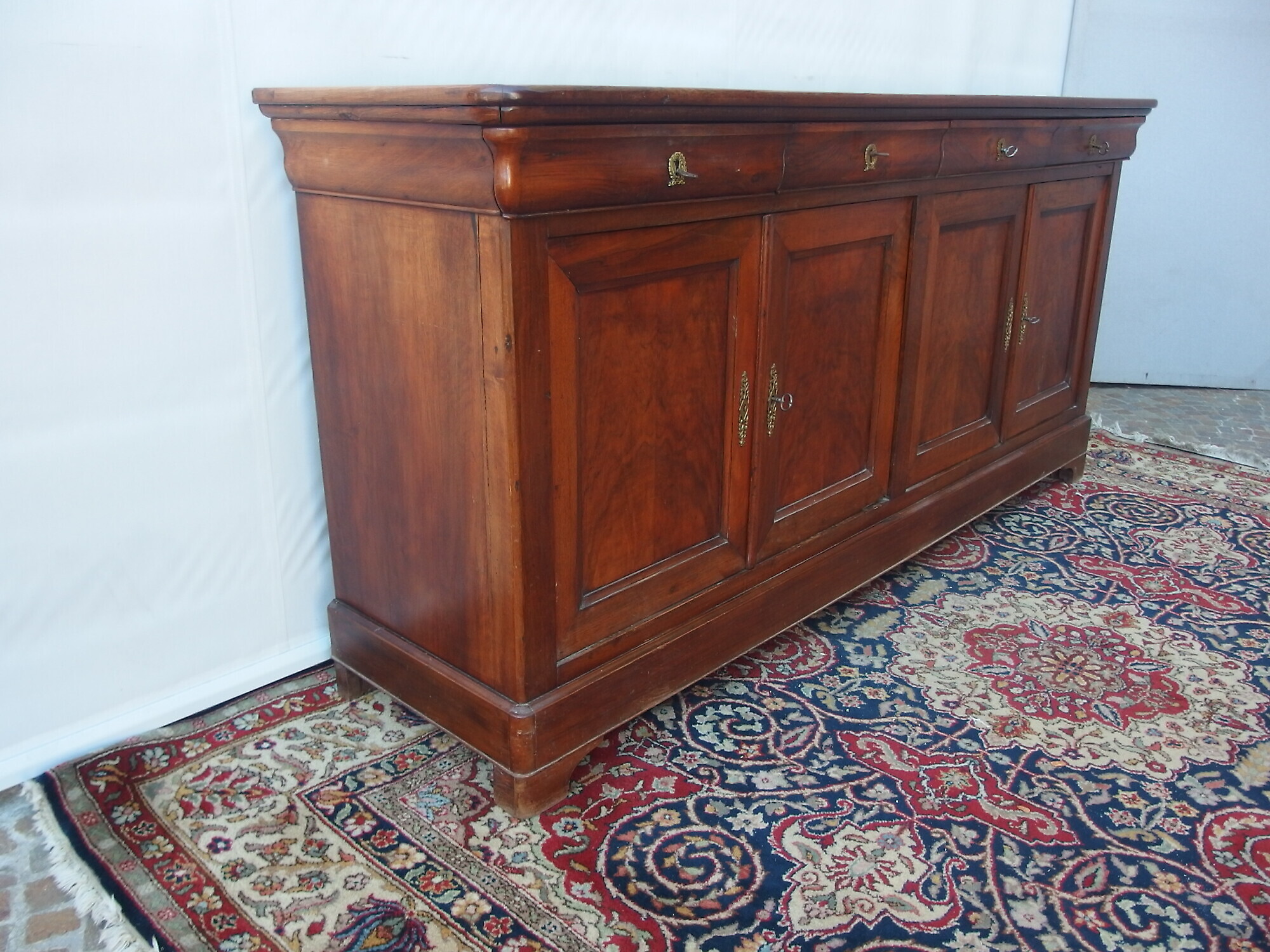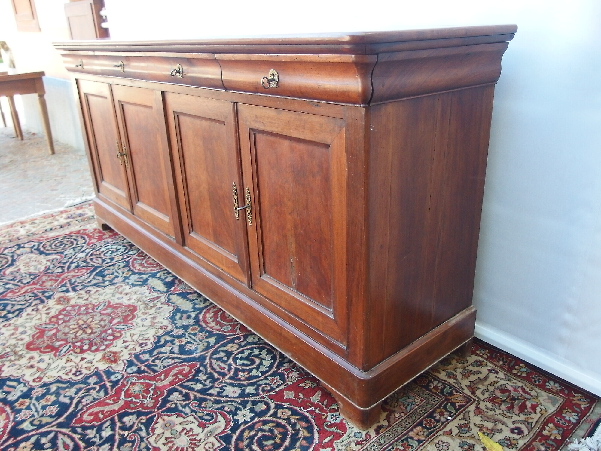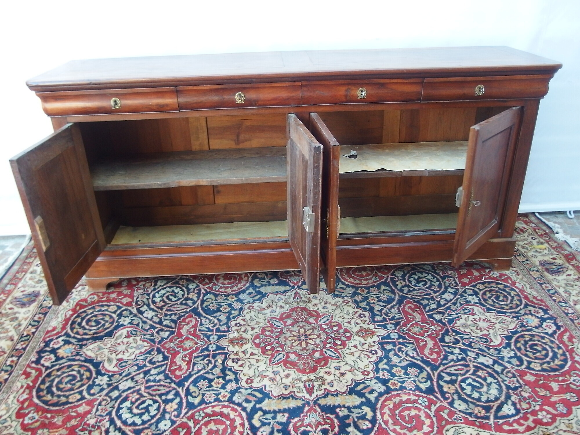 Bellissima credenza “capuccino” stile Luigi filippo a quattro porte e quattro cassetti in noce massello epoca 800 di origine francese.