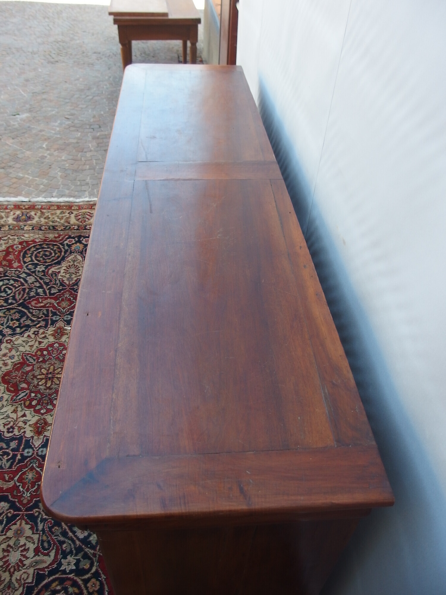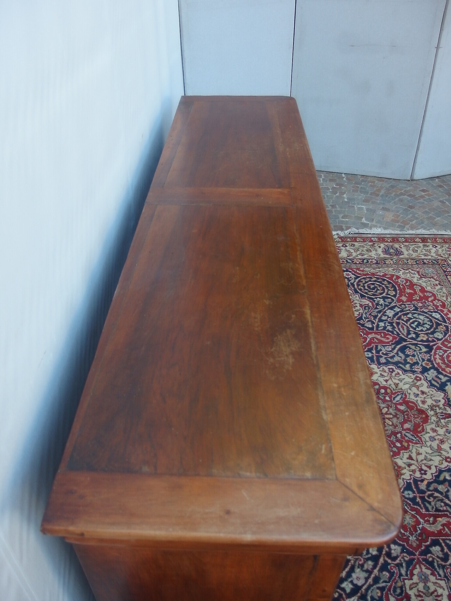 La credenza è in buonissime condizioni e di bella qualità, (vedi foto) notate i pannelli delle porte con il gioco simmetrico della venatura del legno. La credenza l’abbiamo ritirata direttamente da un nostro cliente per permuta dovuto a cambio casa.