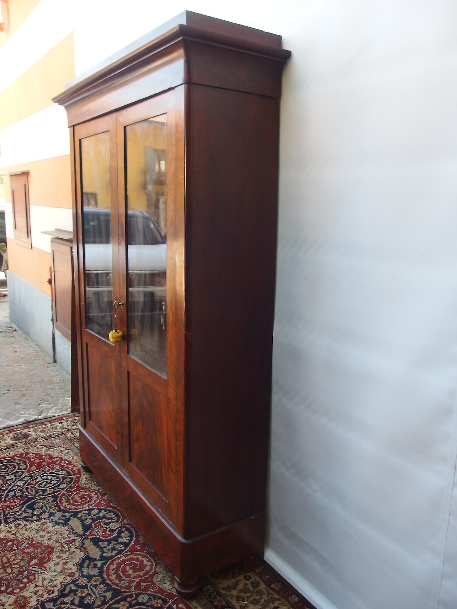 Bellissima libreria a due porte in piuma di mogano stile Carlo X epoca primi 800 di provenienza francese.
