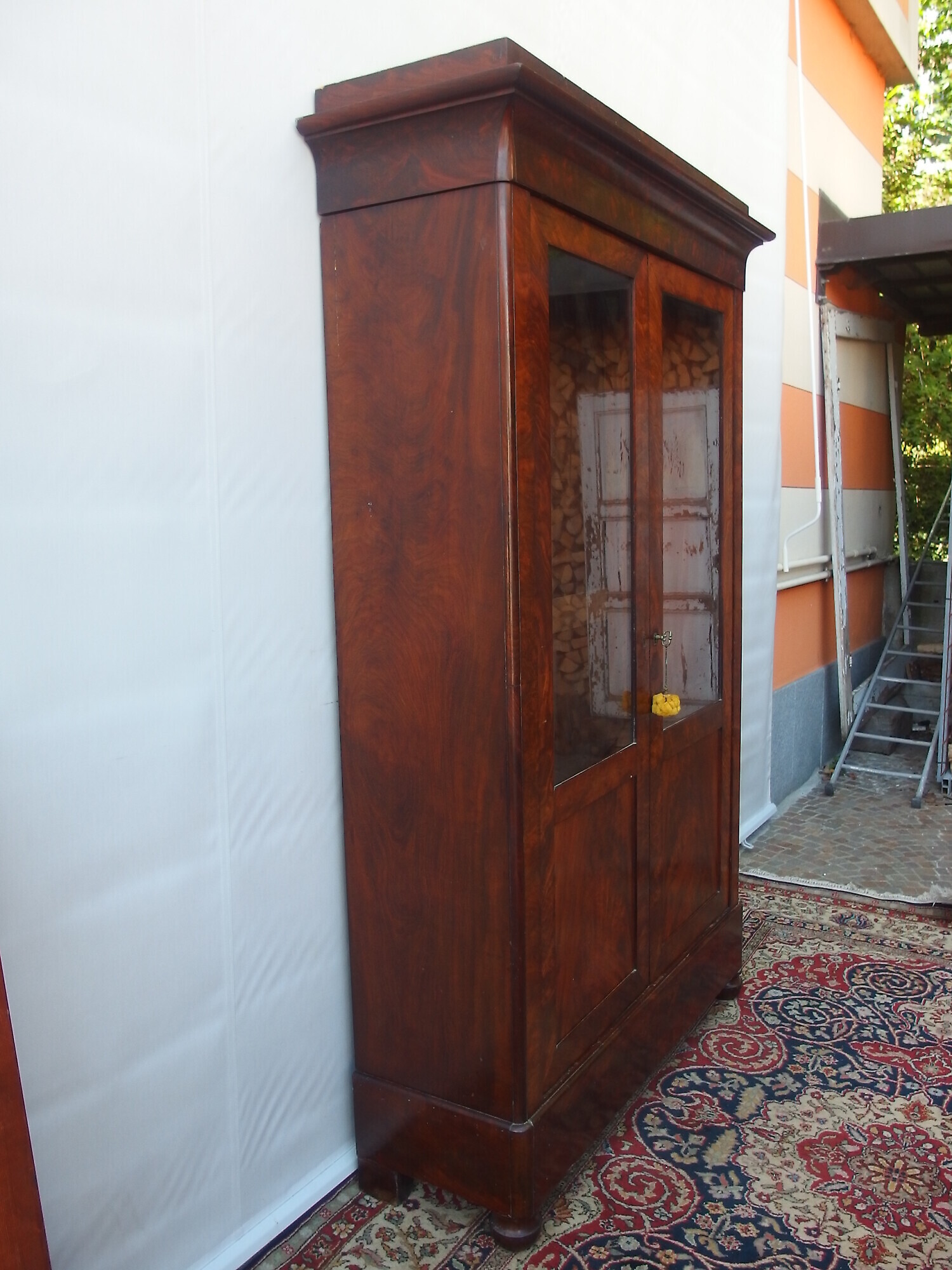 La libreria è tutta originale, il restauro non è eccessivo (vedi foto), completa di ripiani .