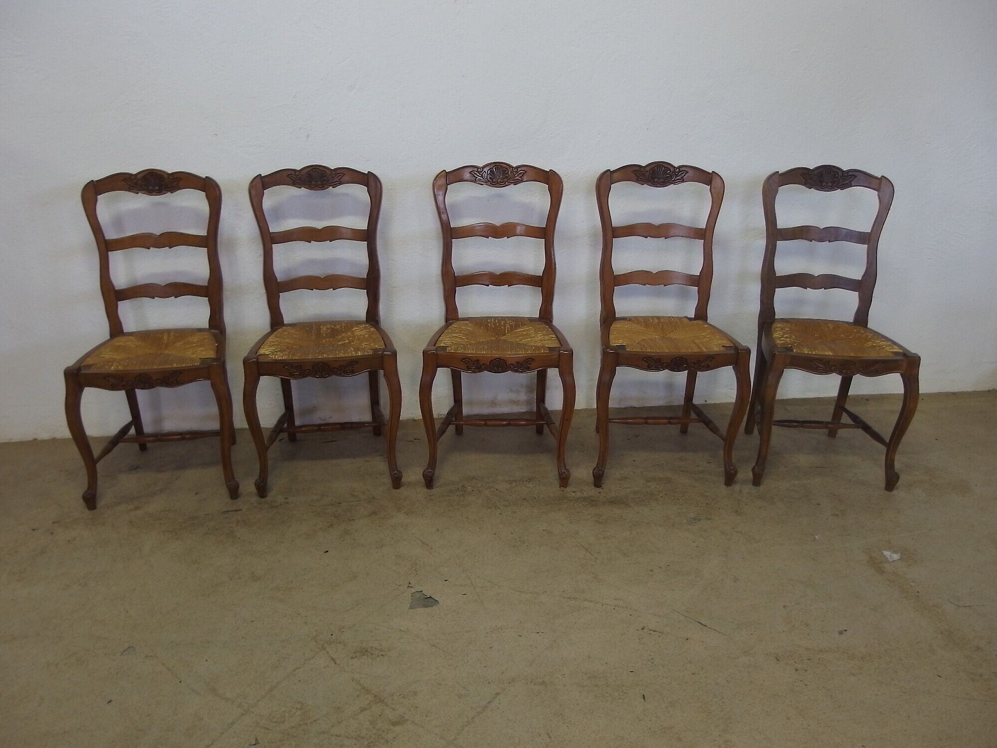 Bellissime gruppo di n. 5 sedie in noce stile provenzale epoca 900 Francia.