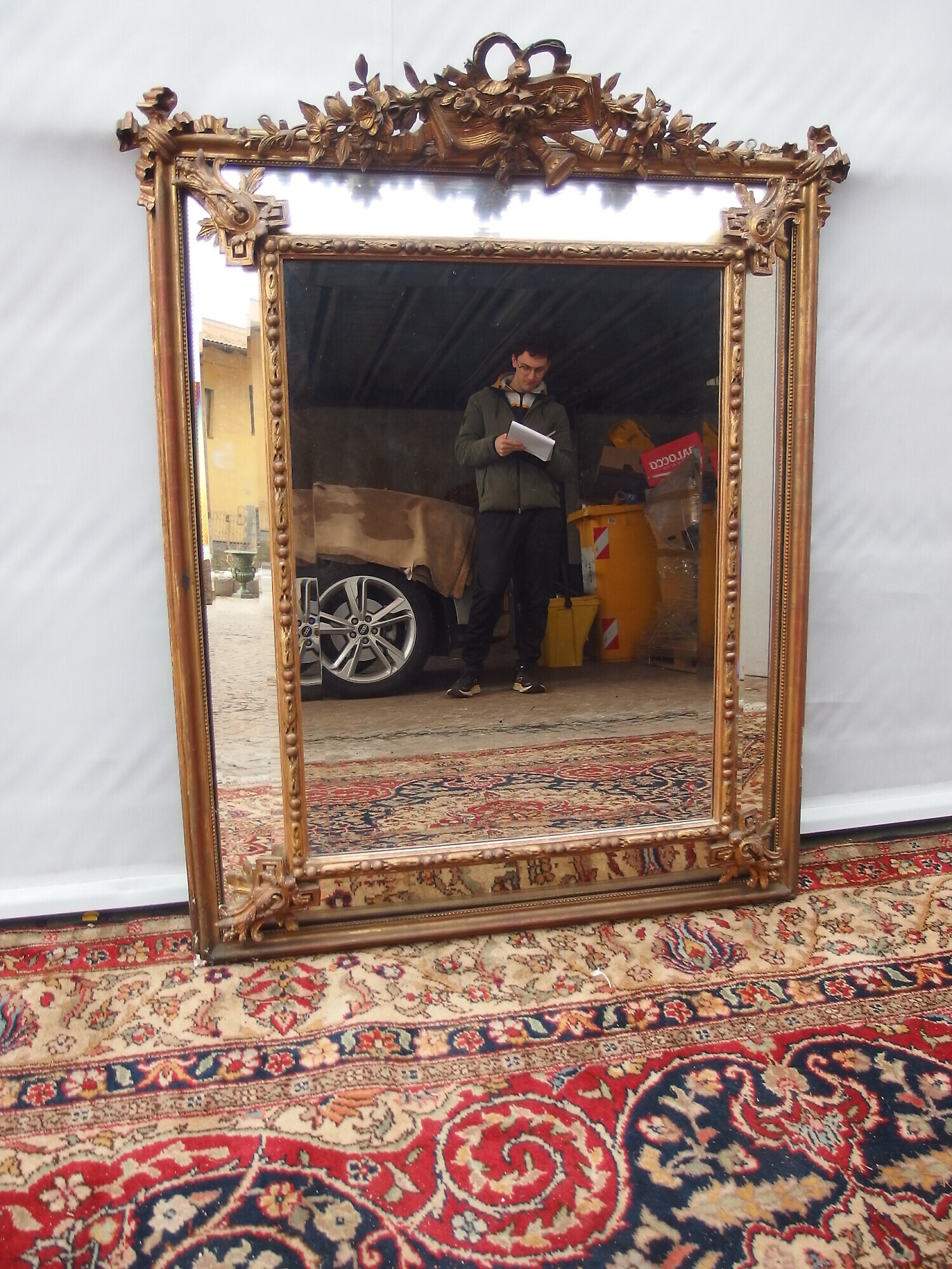 Bellissima specchiera dorata epoca seconda metà dell’800 stile Napoleone III di provenienza francese.