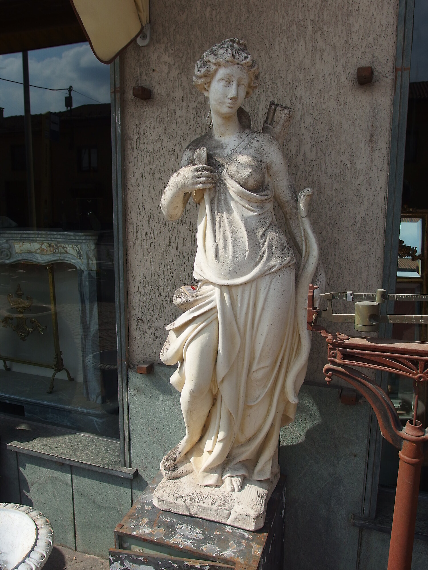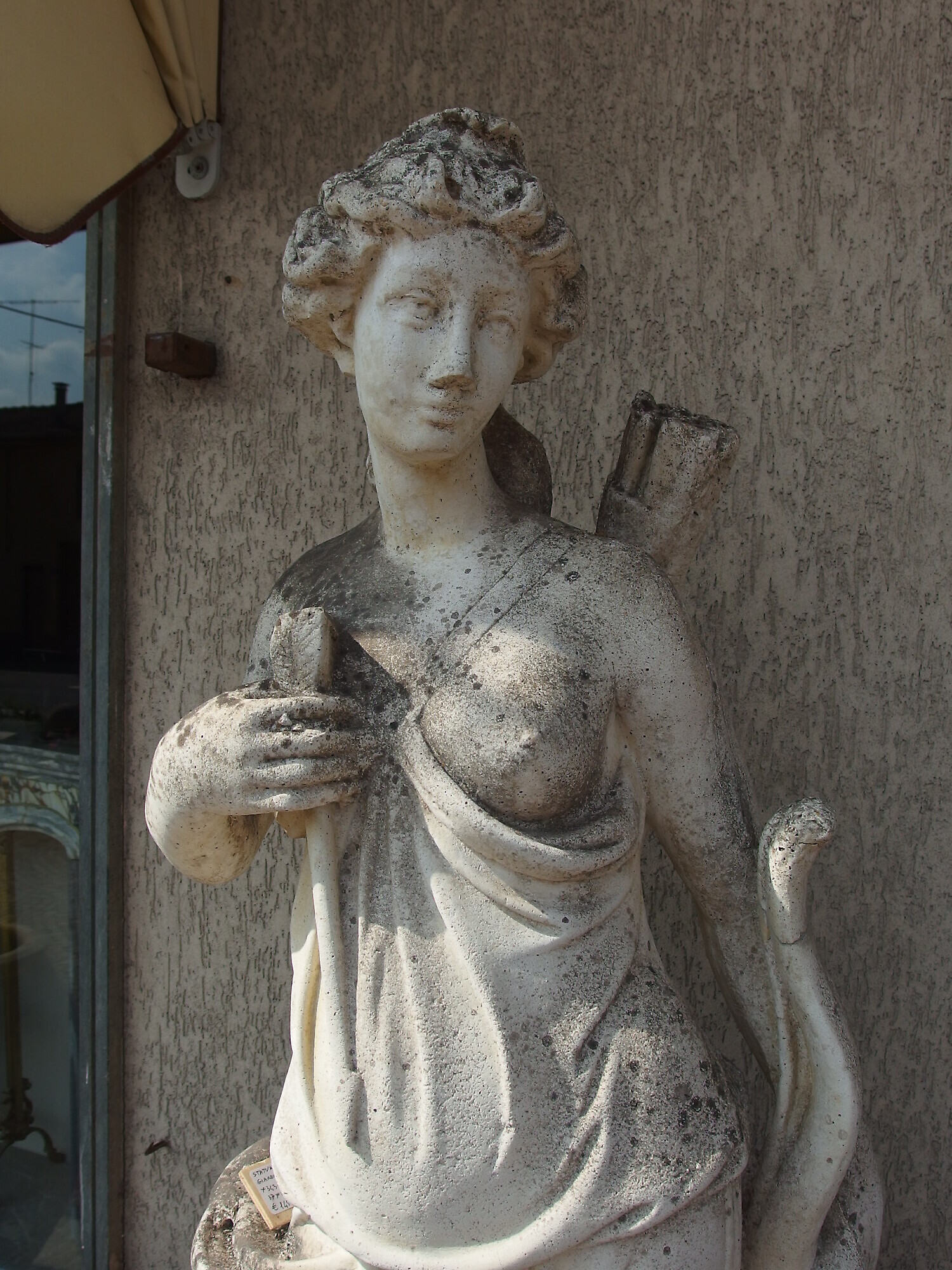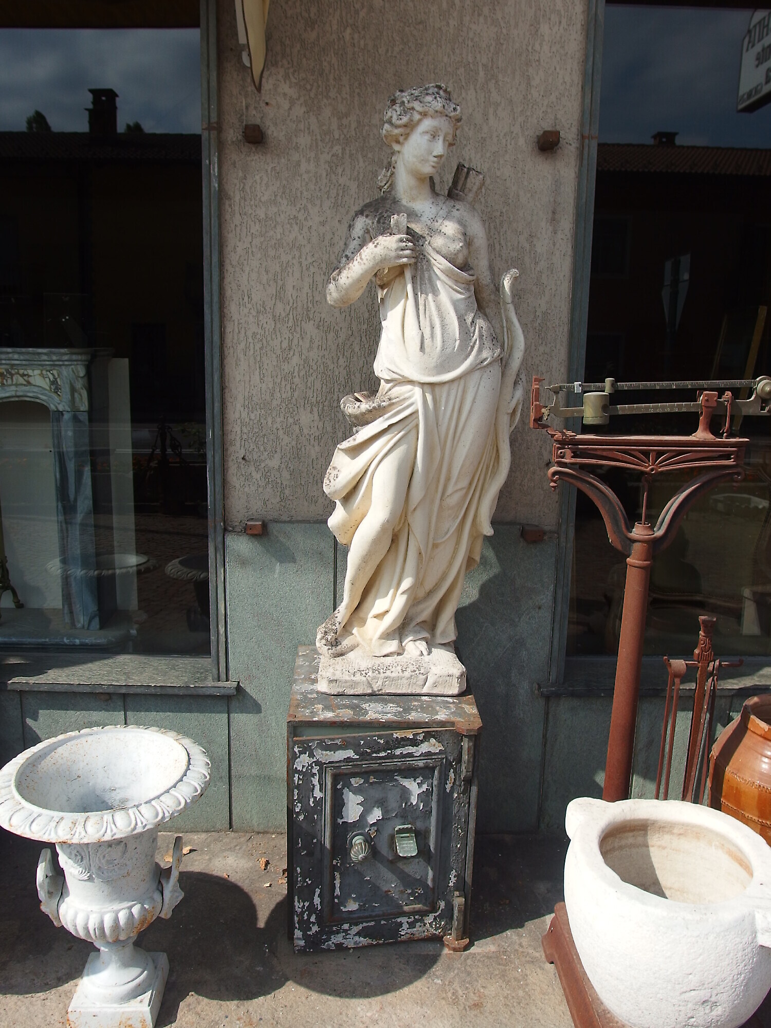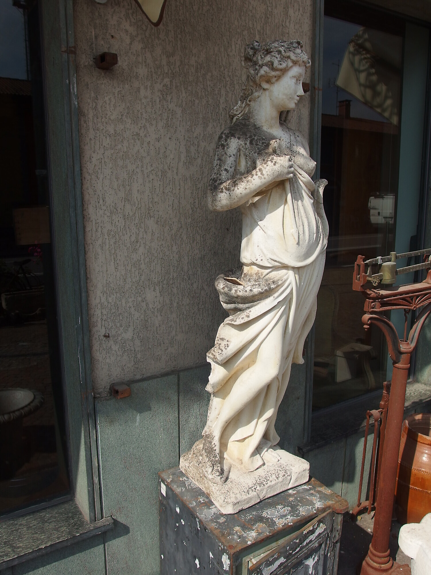 Bellissima statua da giardino di figura femminile in aglomerato di pietra e cemento di epoca primi 900 di origine Italia