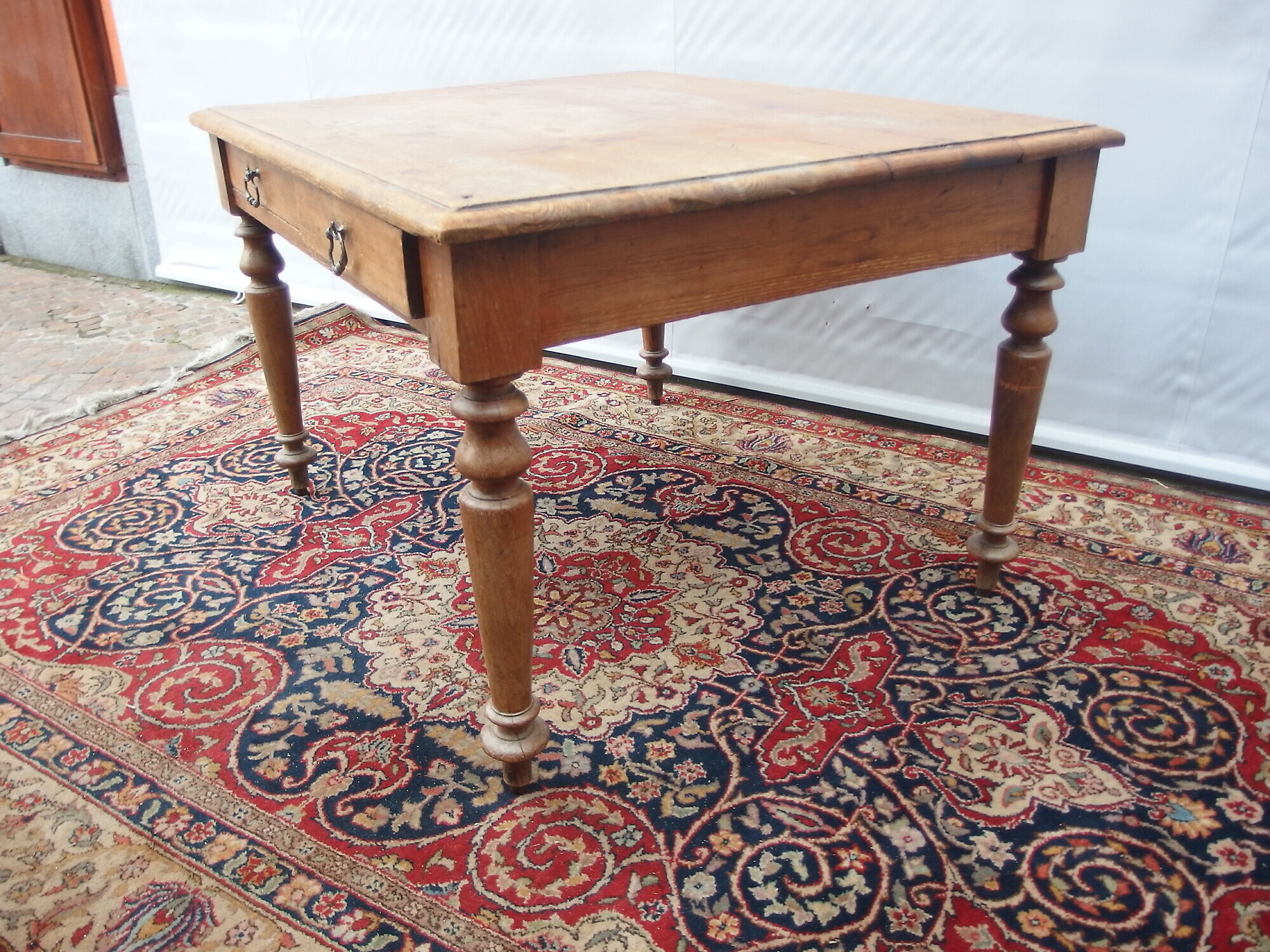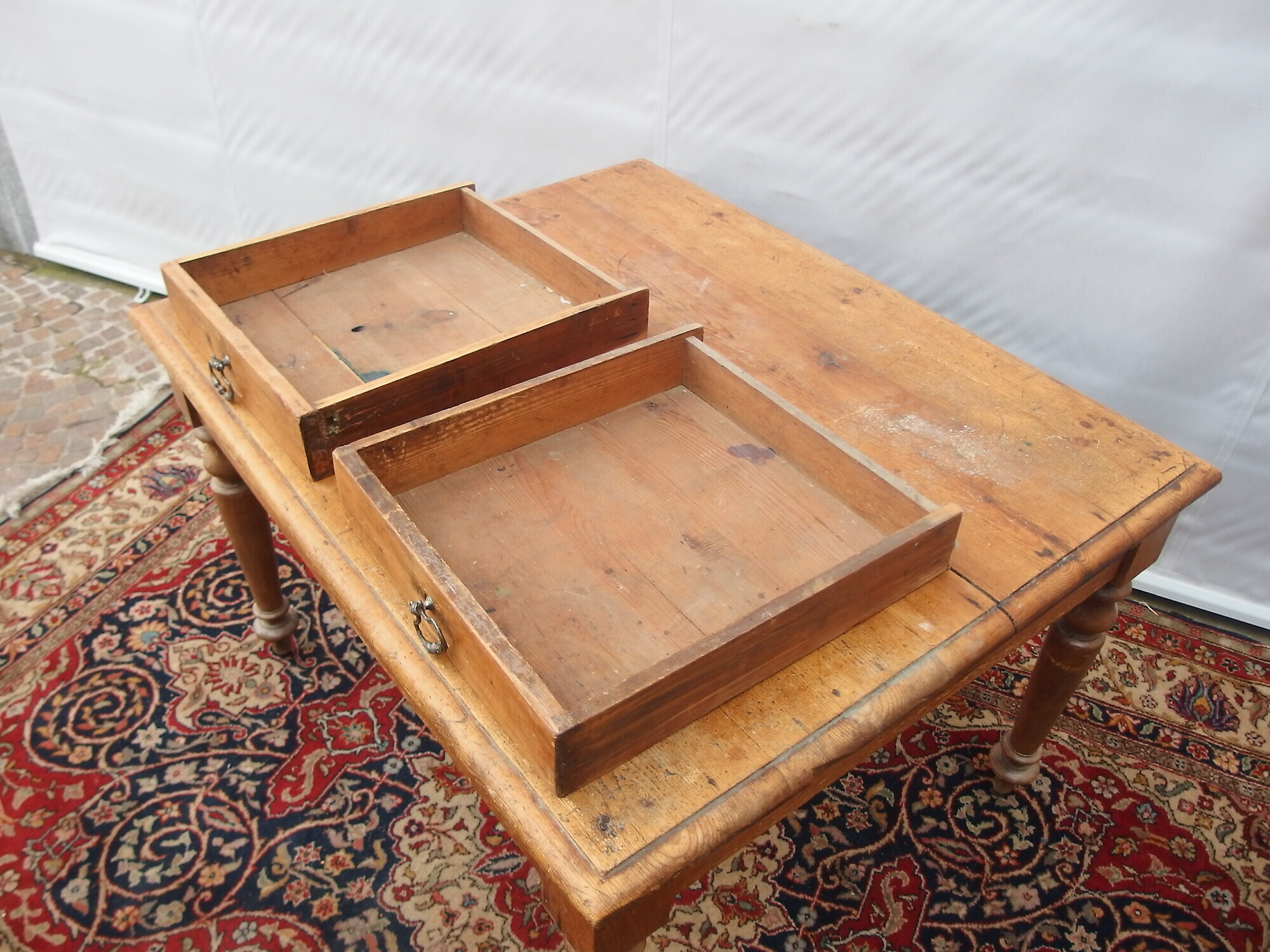Bellissimo tavolo con cassetti rustico in legno di abete epoca seconda metà 800 di provenienza piemontese.